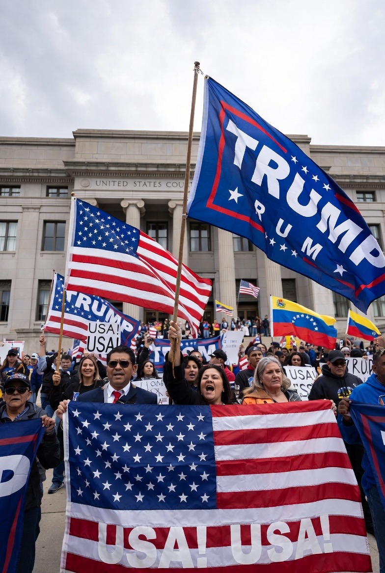 New York, NY – January 5, 2026 — Supporters gathered outside the Daniel Patrick Moynihan United States Courthouse in Manhattan today as deposed Venezuelan President Nicolás Maduro entered a historic arraignment and pleaded not guilty to U.S. federal drug trafficking charges.